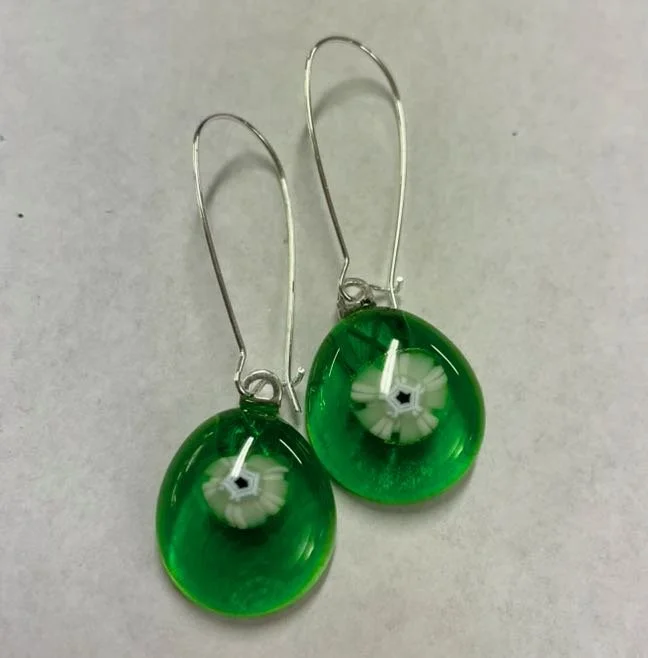 This course is designed to build upon your basic kiln glass jewellery skills. Practice your technique and improve your work through thoughtful design, coldworking methods and multiple firings to create one of a kind glass jewels. Learn how to plan your work for more complex jewellery findings and complete your pieces into pendants, earrings and pins by drilling holes, adhering findings and wire wrapping. Demystifying kiln programs and discussing home studio setups will be discussed.